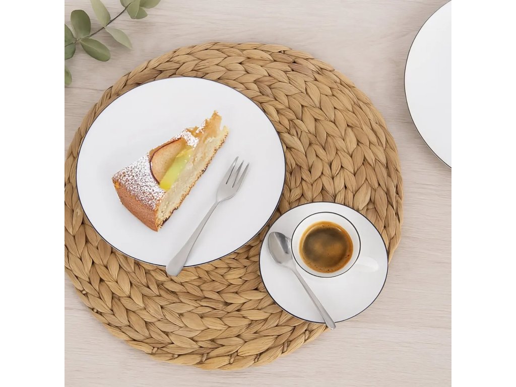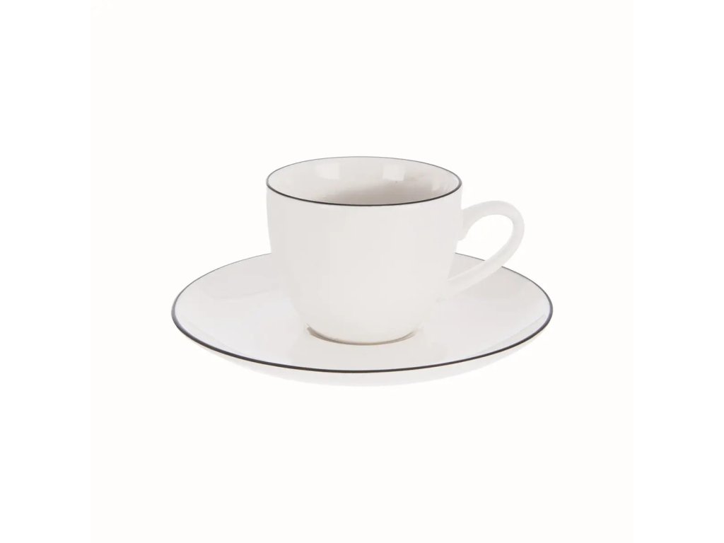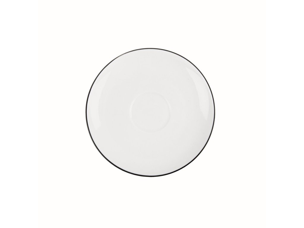 Elegantní porcelánový podšálek má hladký bílý povrch a je zdoben jemnou černou linkou po okraji, která podtrhuje jeho vytříbený vzhled. Ideální k hrnku na espresso 132215 – stylový doplněk pro každého milovníka kávy.