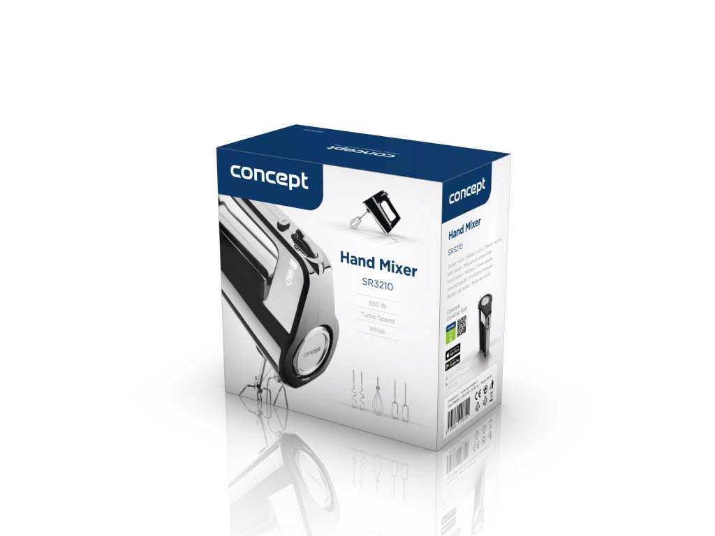 Součástí ručního mixéru SR3210 jsou nerezové šlehací metly určené pro šlehání pěny, žloutků, přípravu krémů nebo řídkého těsta na omelety a palačinky, speciální šlehací metla ideální na domácí šlehačku nebo bílkový sníh a hnětací háky vhodné na přípravu těst. Metly a háky vyjmete jednoduše pouhým stisknutím tlačítka, aniž byste se jich museli dotknout, takže vaše ruce zůstanou čisté.