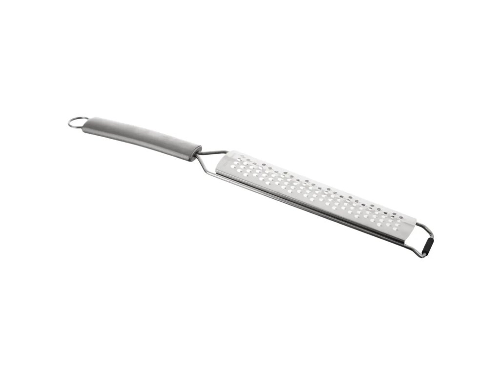 Ruční struhadlo s rukojetí a s krytem pro bezpečné uložení. Vhodné pro jemné strouhání kořenové zeleniny, okurek, brambor, jablek, sýrů, čokolády... Možnost zavěšení. Díky plastové protiskluzové podložce ho bezpečně opřete o podložku a pohodlně strouháte. Plastový kryt chrání struhadlo před otupením a zároveň zamezí poranění rukou.