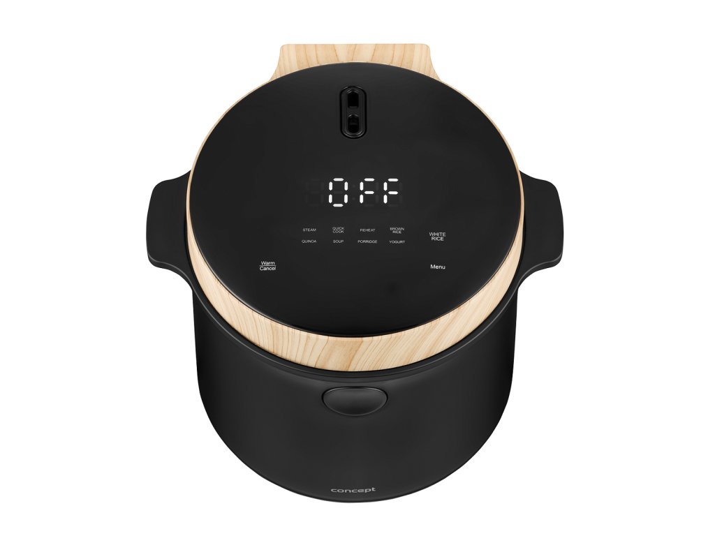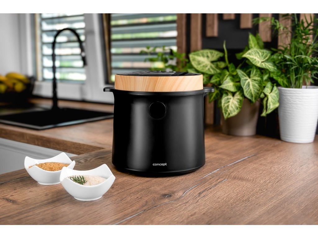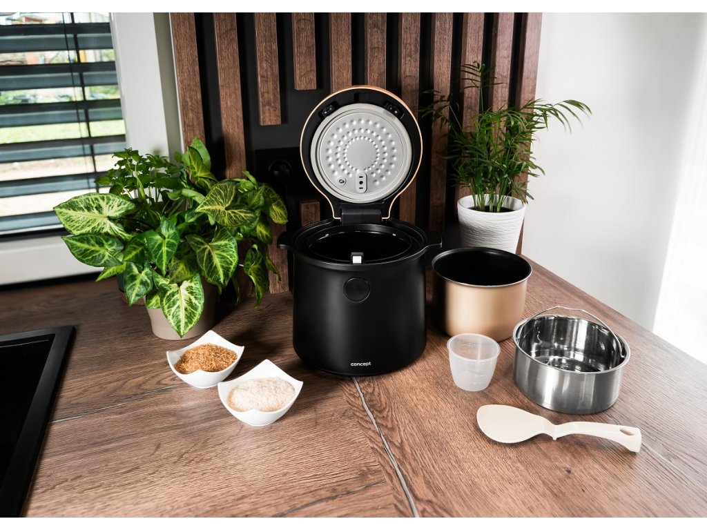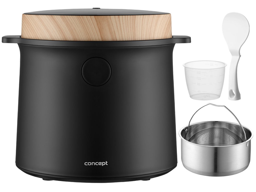 Rýžovar Concept RE4040 kombinuje praktické funkce se stylovým vzhledem, který se hodí do jakékoli kuchyně. Jeho elegantní černý design s dřevěnými prvky perfektně doplní moderní interiér. Díky kompaktním rozměrům se snadno umístí na kuchyňskou linku nebo do skříňky, aniž by zabíral příliš mnoho místa. Navíc je lehký a snadno přenosný, takže si ho můžete vzít na chalupu nebo na jakékoli jiné místo, kde ho budete potřebovat.