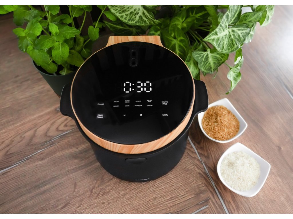 - 9 přednastavených programů (bílá rýže, pára, rychlé vaření, ohřívání, hnědá rýže, quinoa, polévka, ovesná kaše, jogurt)