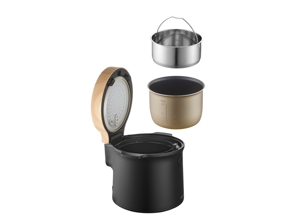 Vyjímatelná vnitřní nádoba s nepřilnavým povrchem o objemu 2 l je klíčovou vlastností tohoto rýžovaru. Minimalizuje přilnavost jídla, takže čištění nádoby je velice snadné a rychlé. Tento design usnadňuje každodenní používání a zajišťuje, že rýžovar je vždy připraven k dalšímu použití bez zbytečné námahy.