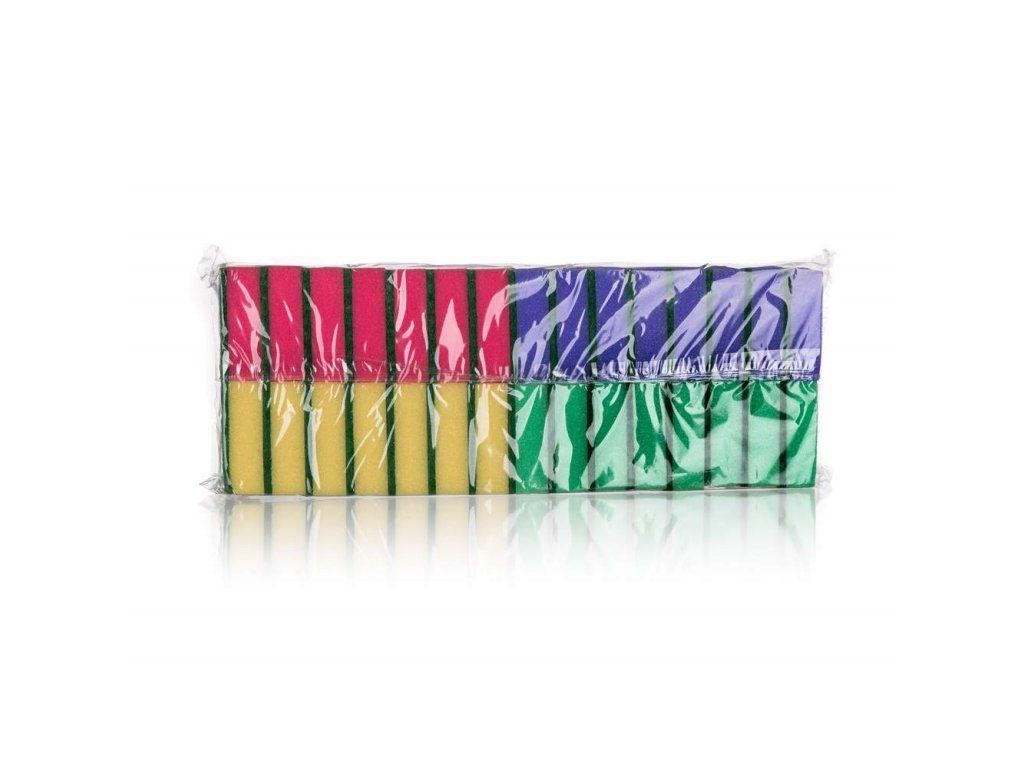 Sada barevných houbiček na nádobí BRILANZ 30 ks, slouží k mytí talířů a hrnců. Rozměr houbiček: 85 x 60 x 30 mm. Houbičky jsou vyrobené z barevné pěny PU a zelených abraziv. Balení obsahuje mix barev. V nabídce máme i další houbičky v různých tvarech a barevném provedení.Doplňkové parametry