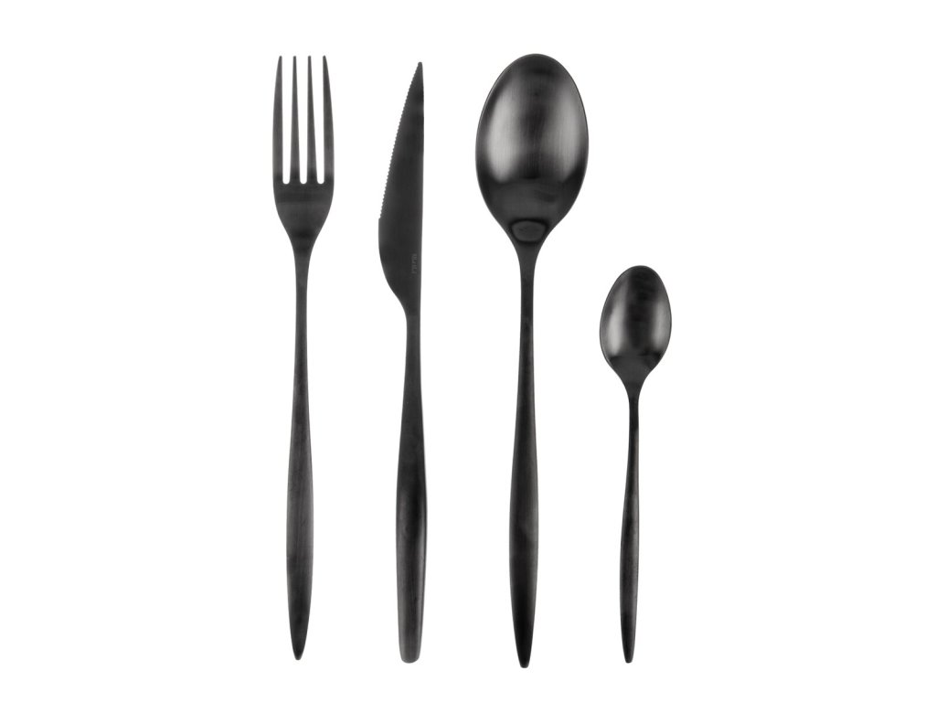 Sada luxusních designových nerezových černých matných příborů MATT BLACK v dárkovém balení. Sada 24 ks. Moderní tvar, černé matné provedení, bez dekoru. Skvělé jako luxusní dárek novomanželům. Materiál: kvalitní nerezová ocel. Lze mýt v myčce na nádobí, ale pokud chcete zachovat krásný vzhled, doporučujeme ruční mytí. Rozměry: 6x lžička - d. 14 cm, 6x lžíce - d. 21,5 cm, 6x vidlička - d. 21,5 cm a 6x nůž - d. 22 cm. Stejný tvar, jen nerezové, jsou příbory 154212 a můžete je v případě zájmu kombinovatDoplňkové parametry