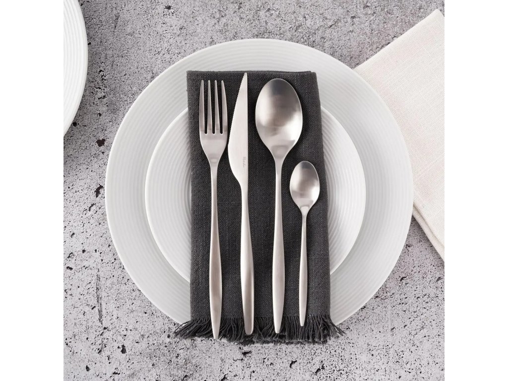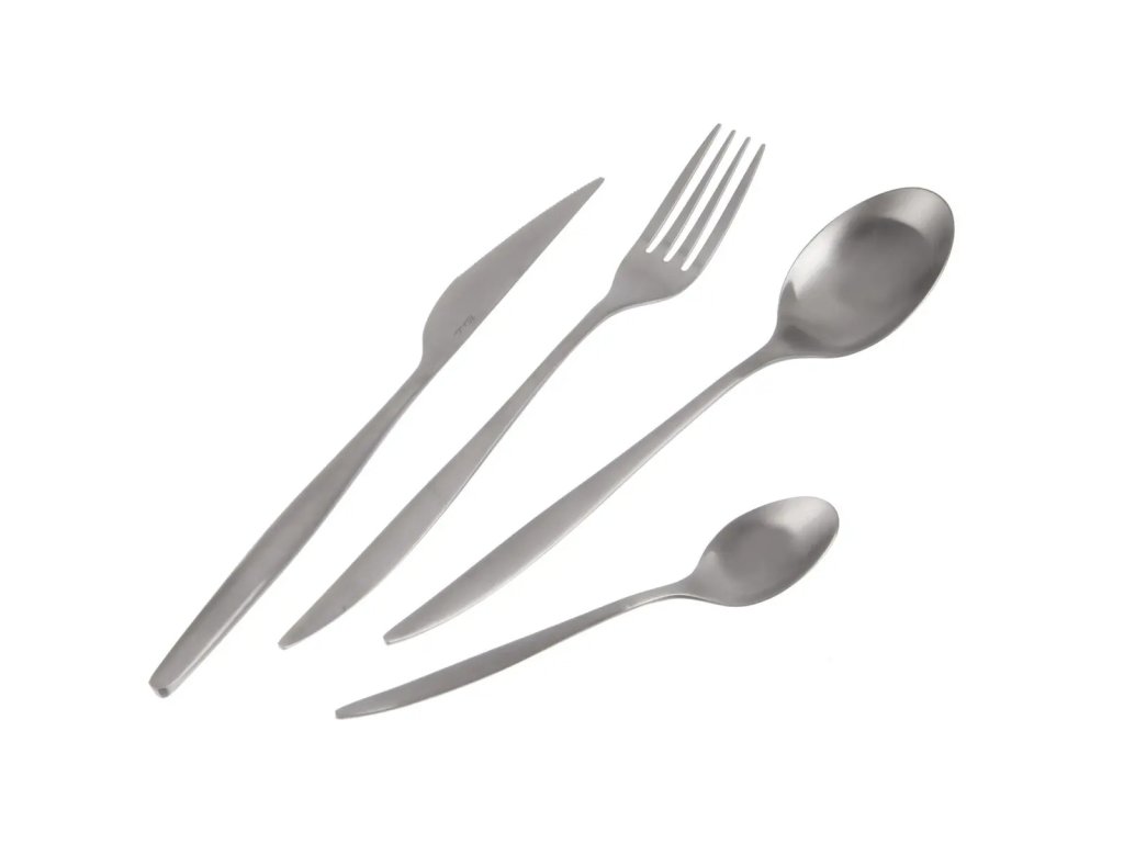 Sada luxusních designových nerezových matných příborů MATT SILVER v dárkovém balení. Sada 24 ks. Moderní tvar, matné provedení, bez dekoru. Skvělé jako luxusní dárek novomanželům.