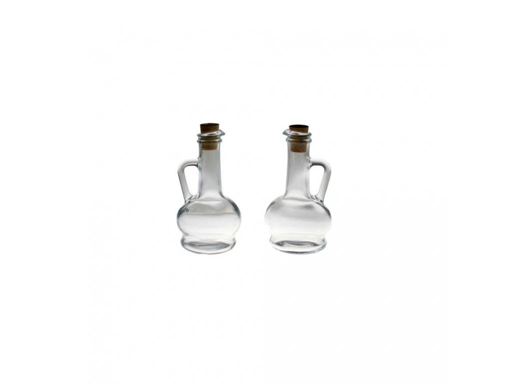 Sada 2 ks lahviček na ocet a olej, dochucovací sada obsahuje skleněné lahvičky s ouškem a plastovou zátkou, objem lahviček 260 ml, výška 16 cm.Doplňkové parametry