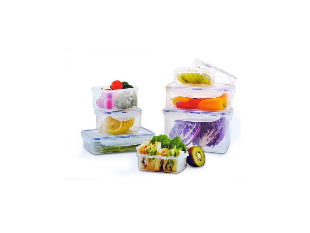 * Sada 7 dóz Lock and Lock s patentními víky pro uchovávání a přenášení potravin.