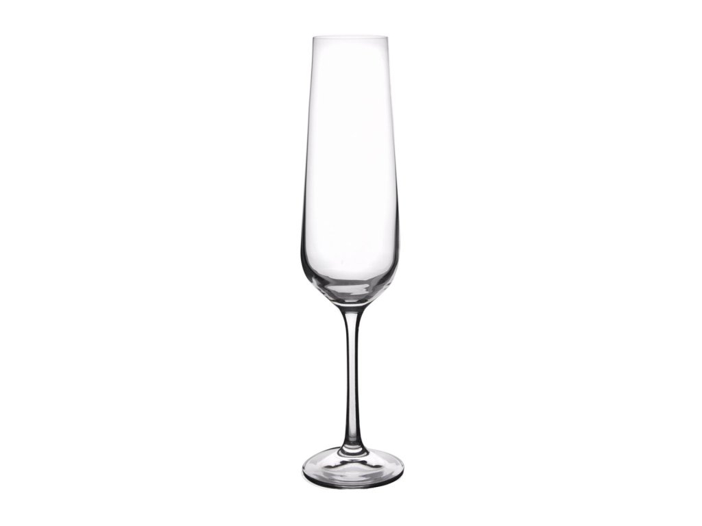 Sklenice na nožce na sekt. Vhodná do myčky nádobí. Materiál: Bohemia Crystal - české sklo. Sada 6 ks. Rozměry: objem 0,2 l, pr. 4/5,5 cm, v. 25 cm.Doplňkové parametry