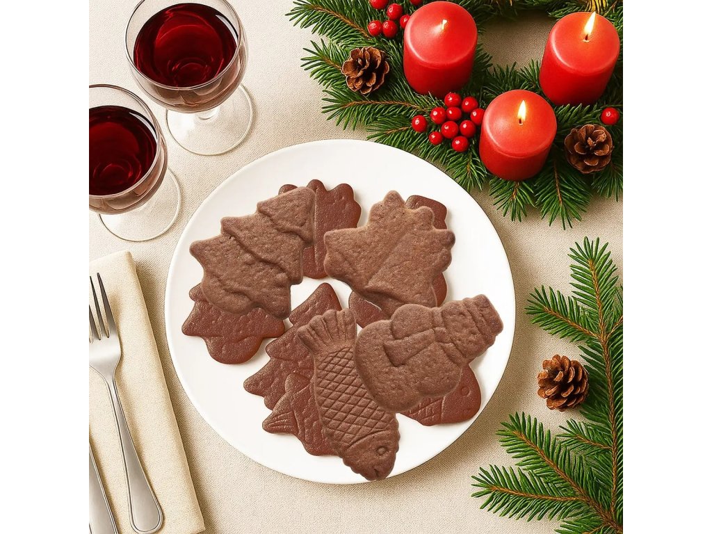 - Rozměry: 34,5x24,5x1,2 cm, ryba d. 8,6 cm, sněhulák v. 6,7 cm, zvonečky v. 5,5 cm, stromek velký v. 6,6 cm, stromek malý v. 4,6 cm.
