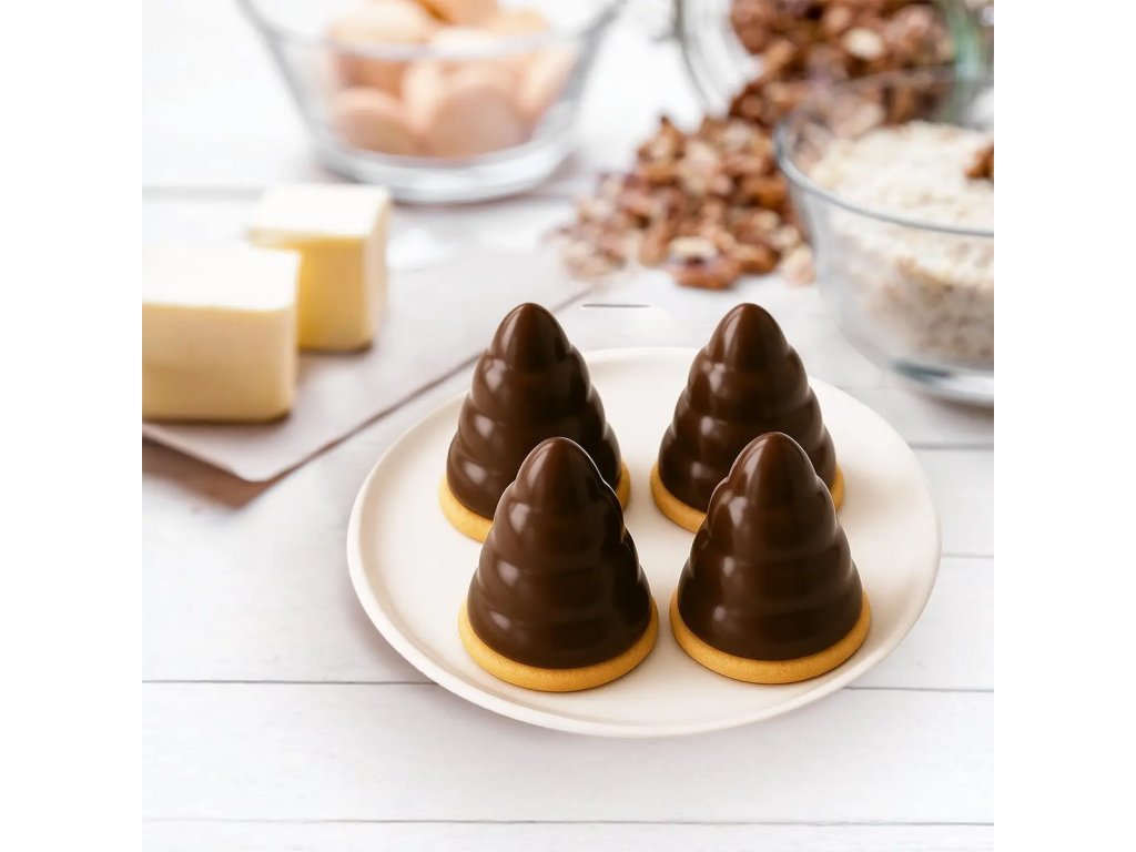 Praktická silikonová forma pro přípravu tradičních nepečených úlků (včelích úlů) připraví nepečené cukrovinky z různých druhů těst. Forma obsahuje 28 tvarů a díky pružnému a nepřilnavému materiálu lze hotové úlky snadno vyjmout bez poškození tvaru. Součástí balení je také recept, který vám usnadní přípravu. Pro vytvoření důlku ve středu úlku doporučujeme použít dřevěný trn z naší nabídky 711146, který zajistí ideální tvar pro náplň.
