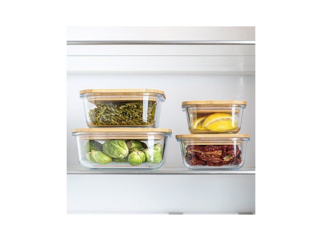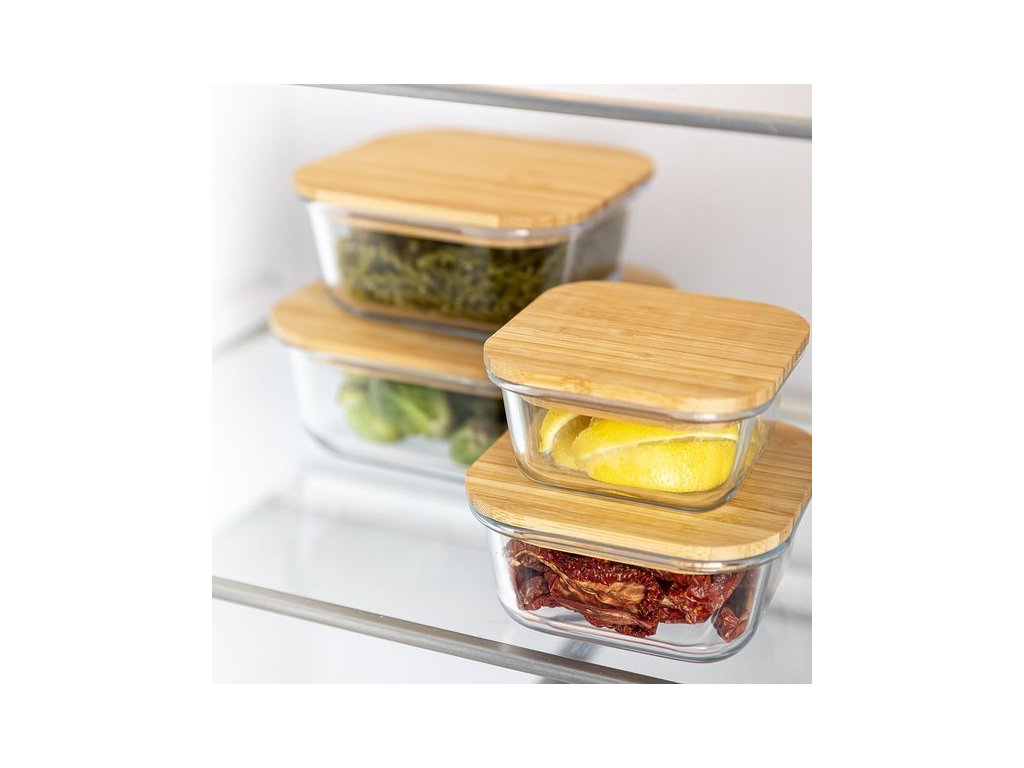 Dóza Clavato 15 x 15 cm je vhodná k uchovávání i přípravě potravin v domácnosti. Dóza je vhodná do myčky, ale bez víčka. To je vyrobeno z bambusu a opatřeno silikonovým těsněním. Povrch víčka je přírodní bez laku. Tělo dózy je z tlustého čirého skla. Díky tomu je dóza odolnější a snižuje se riziko rozbití.Tipy