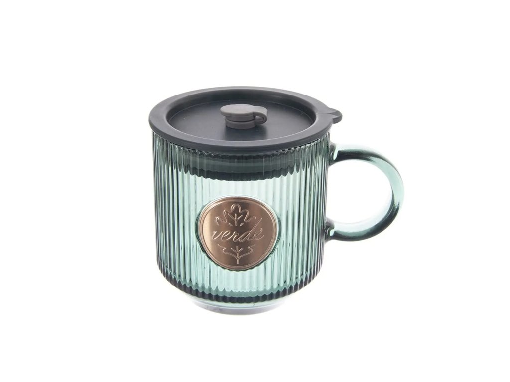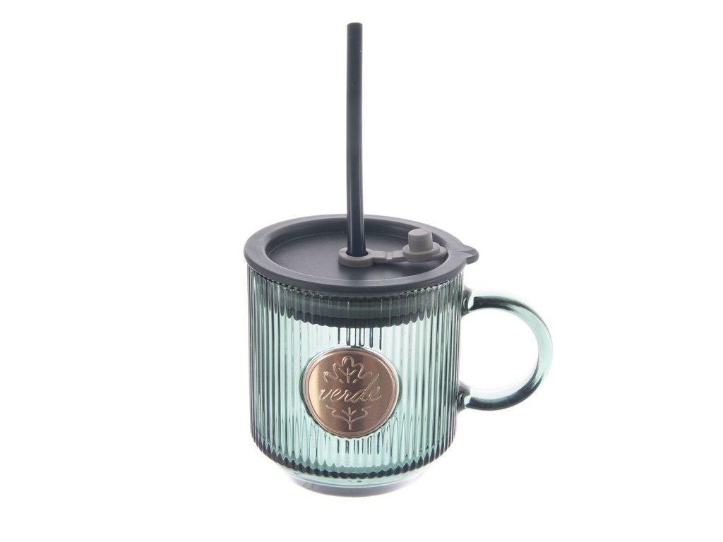 Skleněný hrnek s víčkem a brčkem Orion VERDE 0,35 l