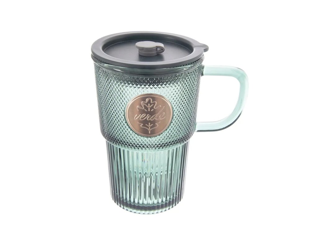 Skleněný hrnek s víčkem a brčkem Orion VERDE 0,46 l