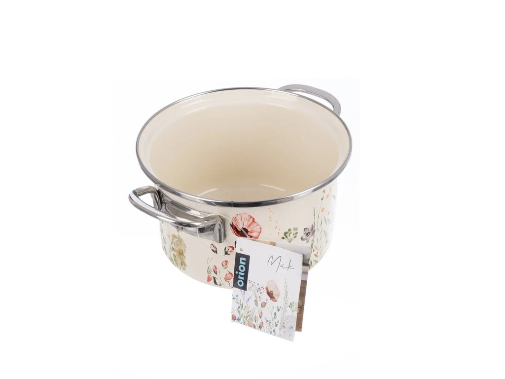 Sortiment smaltovaného nádobí v provedení MÁK doplňuje nerezové kování, tato řada zahrnuje hrnce, kastroly, rendlíky. Hrnec se výborně hodí na přípravu polévky, omáčky, vaření těstovin, brambor a jiných příloh...