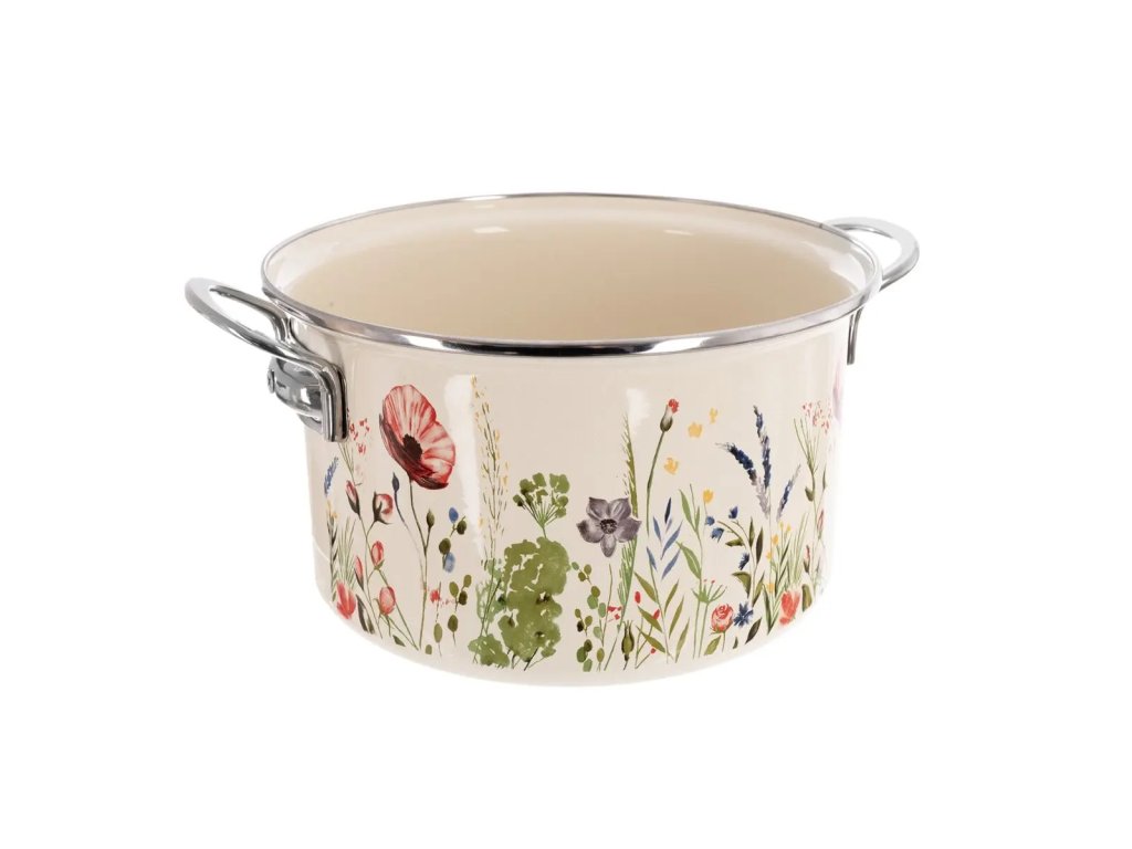 Sortiment smaltovaného nádobí v provedení MÁK doplňuje nerezové kování, tato řada zahrnuje hrnce, kastroly, rendlíky. Hrnec se výborně hodí na přípravu polévky, omáčky, vaření těstovin, brambor a jiných příloh...