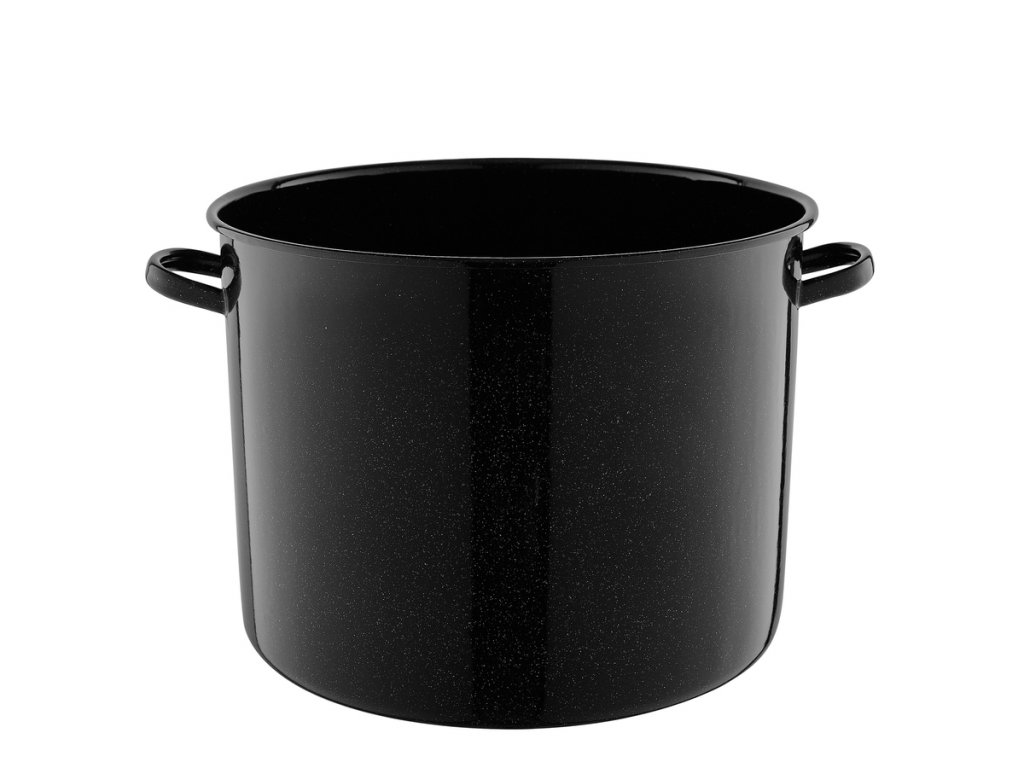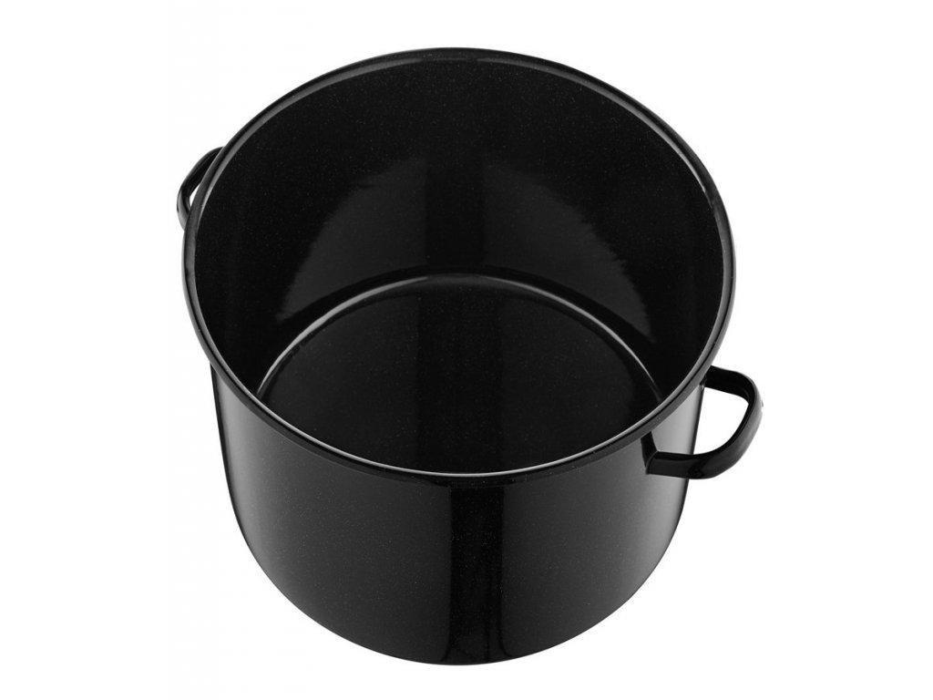 Velký smaltovaný hrnec o objemu 20 l. Je vybaven uchy pro snadné přenášení a manipulaci. Balení obsahuje také smaltovanou poklici.