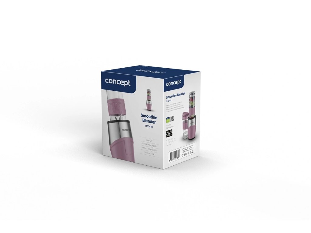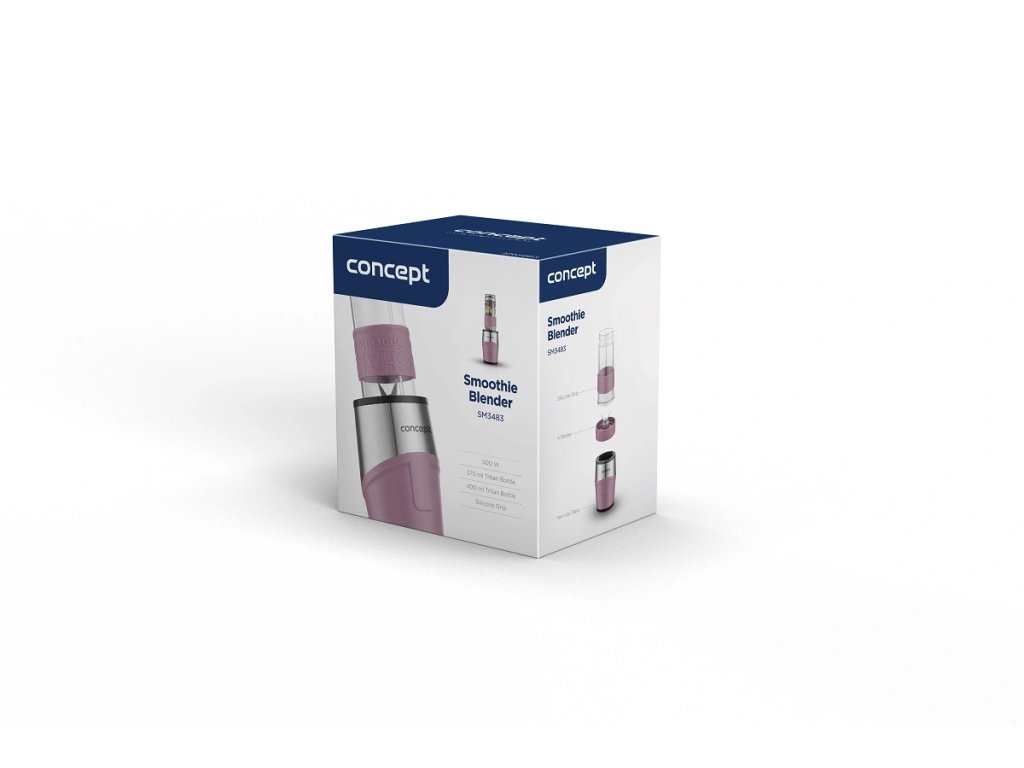 Smoothie blender Concept SM3483 je určený pro rychlou přípravu vašich oblíbených nápojů. Disponuje dvěma mixovacími nádobami, ze kterých můžete rovnou pít. Stačí pouze vyměnit nože za víčko a lahev se smoothie si můžete vzít kamkoliv s sebou. Víčko je vybavené poutkem a speciálním dvojitým těsněním, takže máte jistotu, že se vám váš nápoj nevylije. Perfektně zapadne také do držáku nápojů v autě.