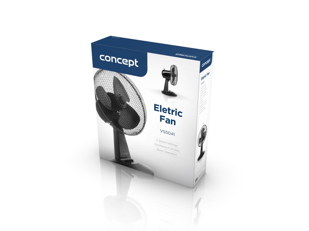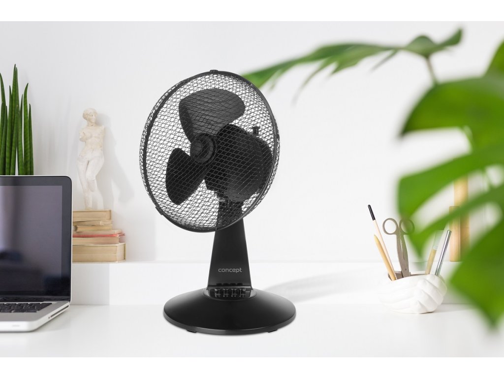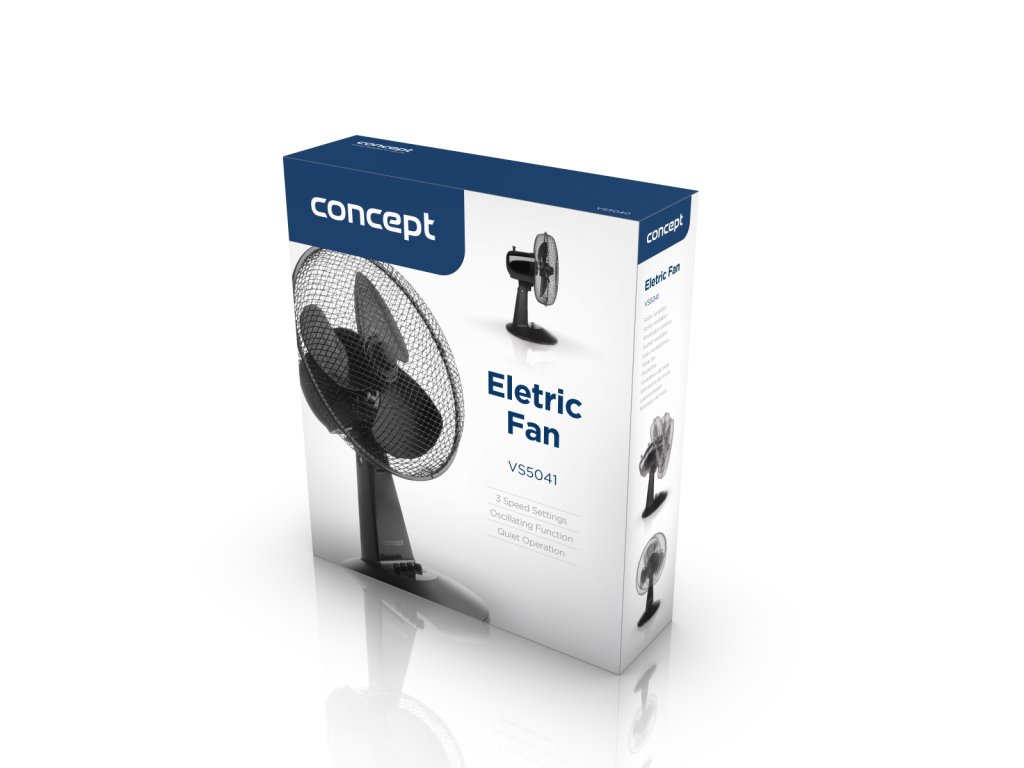 Stolní ventilátor Concept VS5041 nabízí 3 rychlosti proudění vzduchu. Hlava ventilátoru je osazena třemi lopatkami a umožňuje nasměrování podle vašich potřeb – horizontálně i vertikálně. Rovnoměrné šíření chladného vzduchu po místnosti zajistí funkce oscilace s úhlem otáčení 80 ± 5 °.