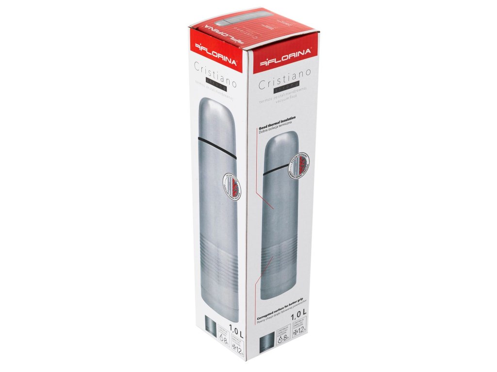 Kvalitní termoska Cristiano na horké nápoje. Dlouhodobě udržuje teplotu čaje, kávy nebo jiného nápoje. Termoska o objemu 1000 ml je ideální do školy, do práce nebo na různé výlety.Vlastnosti termosky