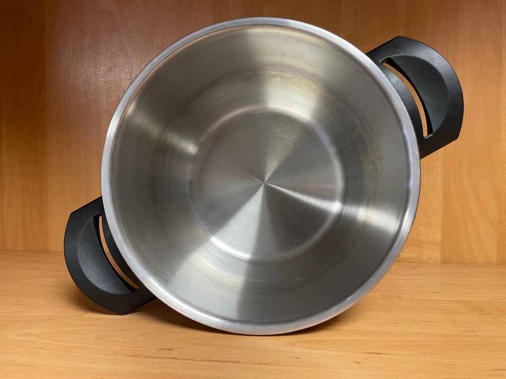 - sendvičové dno rozvádějící teplo rovnoměrně do celé nádoby,