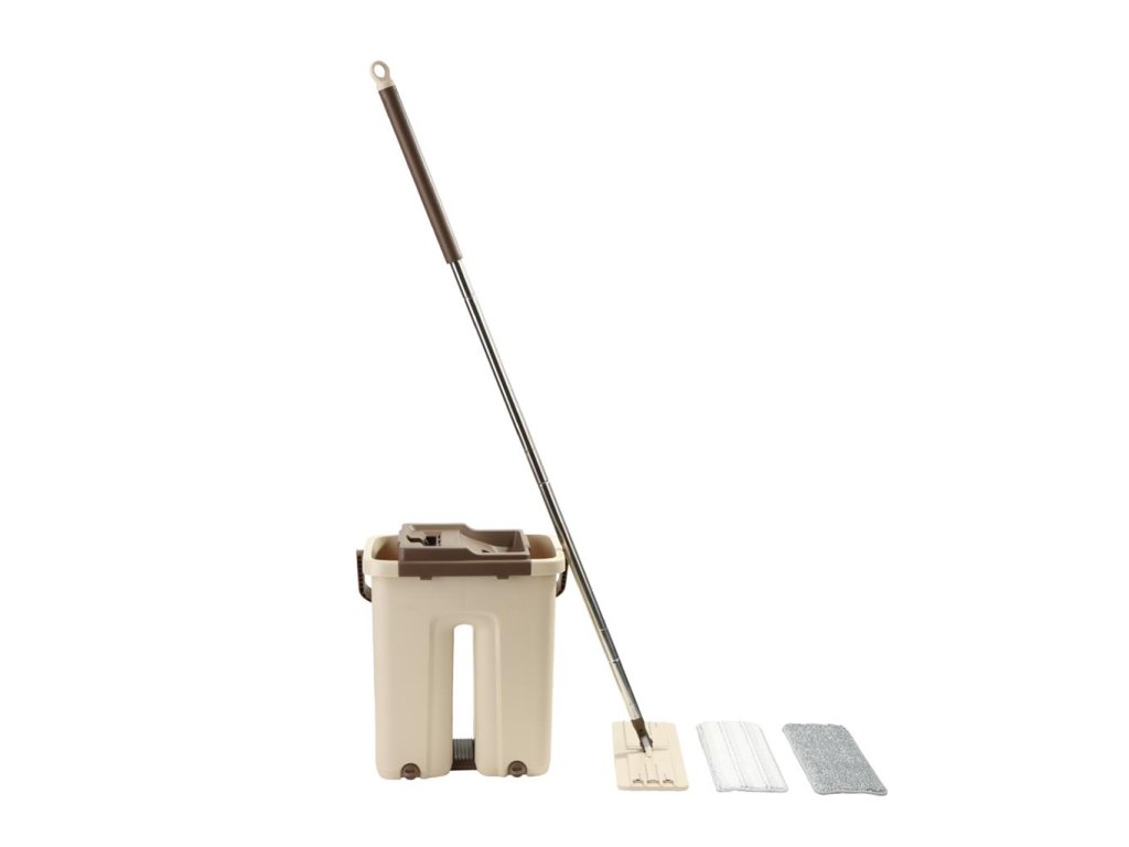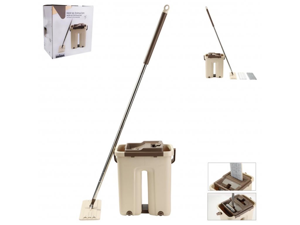 Mop se ždímačem je velmi praktický pomocník určený pro stírání podlah. Značně Vám usnadní úklid Vaší domácnosti. Umožní Vám mytí podlah bez kontaktu rukou se špinavou vodou, bez ohýbání zad. Díky pohyblivému kloubu snadno uklidíte i pod nábytkem, v rozích místností, na schodech. Oceníte univerzálnost mopu - je určen pro všechny typy podlah (parkety, lamino, dřevo, linoleum, dlažba) a nabídne záběr až 33 centimetrů. Set obsahuje dvoukomorové hranaté vědro s odnímatelným nástavcem na praní i ždímání mopu. Praktické výpustě s uzávěrem usnadní manipulaci při vylévání vody. Tyč je složena ze 4 dílů a nabízí možnost upravení délky mopu. Snadno odnímatelný návlek z mikrovlákna s vynikající absorpcí nečistot (lze prát v pračce, bez použití aviváže). Možnost zavěšení mopu, pohodlné přenášení naplněného vědra pomocí ucha. Materiál: pevný a kvalitní plast, kov, mikrovlákno.