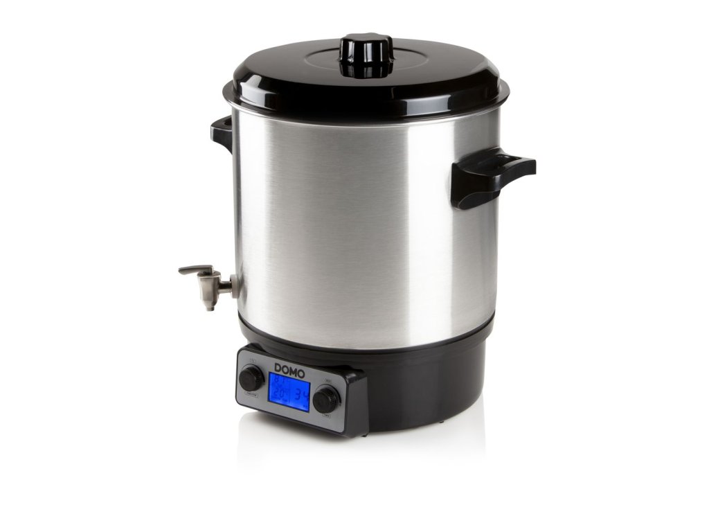objem 27 l • příkon 2 000 W • časovač až 120 min • regulace teploty 30 až 100 °C • ochrana proti přehřátí a chodu nasucho • zvuková signalizace teploty • plastový výpustný kohout • prostor pro 22 zavařovacích sklenic 0,75 l + 4 sklenice 0,5 l • kontrolka provozu • plastový rošt • skrytá tepelná spirála • 1 m přívodní kabel